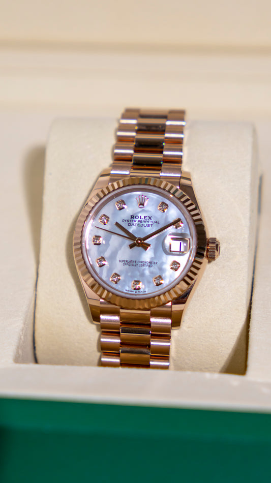 Rolex Datejust 31mm Everose Gold Presidential Mother of Pearl Dial Reference 278275