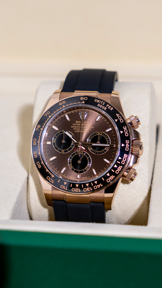 Rolex Daytona Rose Gold Oysterflex Chocolate Dial Reference 126515LN